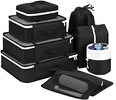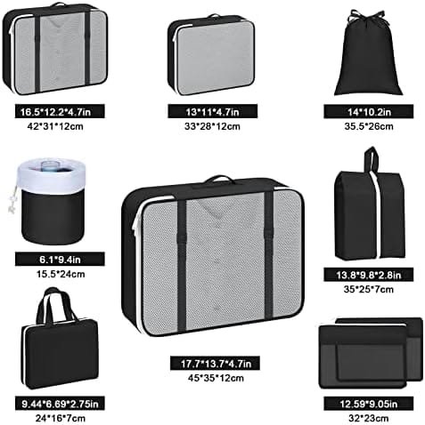 Easortm Pakcing Cubes for Suitcases 9 Set, Easortm Suitcase Organizer Bags Set Foldable Travel Bags Organizer for Luggage, Travel Cubes for Packing Luggage Organizer for Shoes Cosmetics Toiletries Clothes. (Black)
