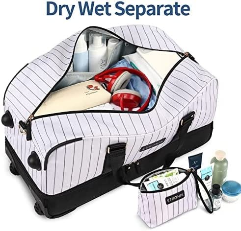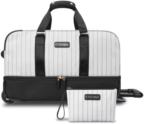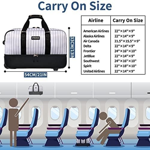 ETRONIK Rolling Duffle Bag with Wheels, 21-inch Flight Approved Travel Duffle Bag with Wet Pocket & Shoe Compartment, Carry On Luggage 22x14x9 Airline Approved, Grey