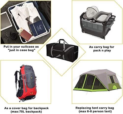 【MULTI-USAGE】This foldable duffel bag fits graco pack and play well and also can be a nice tent bag replacement.