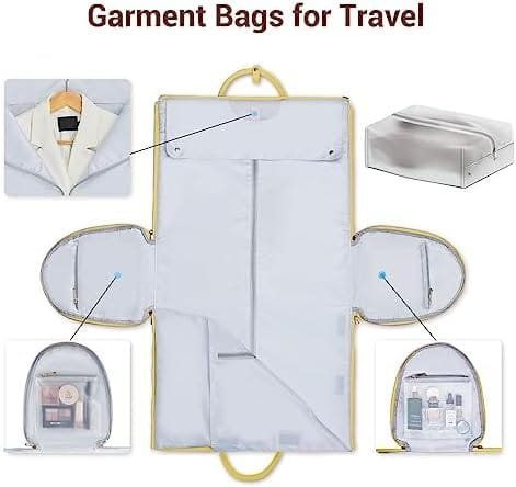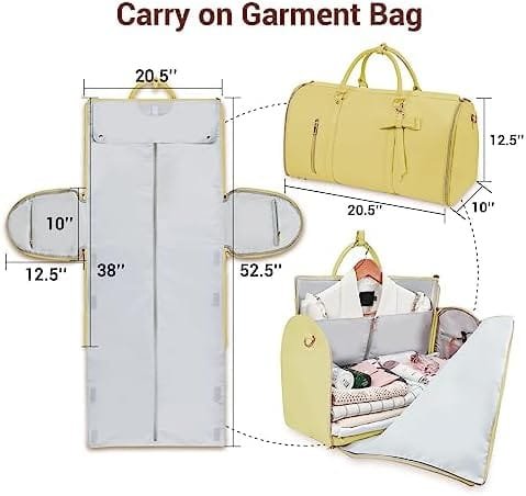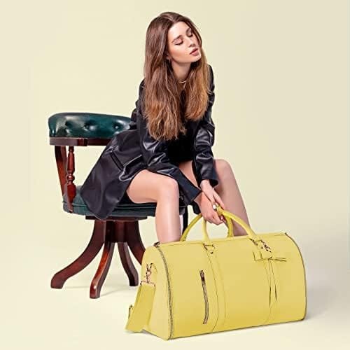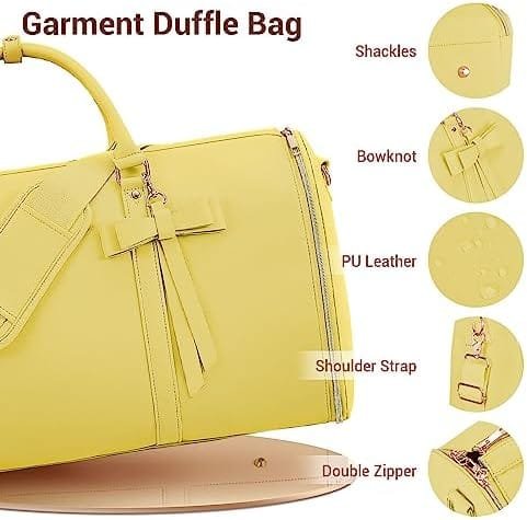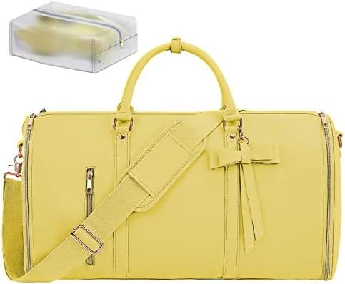 Garment Bags for Travel, Convertible Suit Travel Bag for Women, Stylish Carry On Garment Bag with Toiletry Pocket, Shoulder Strap and Shoes Compartment, 2 in 1 Foldable PU Leather Duffle Bag, Yellow