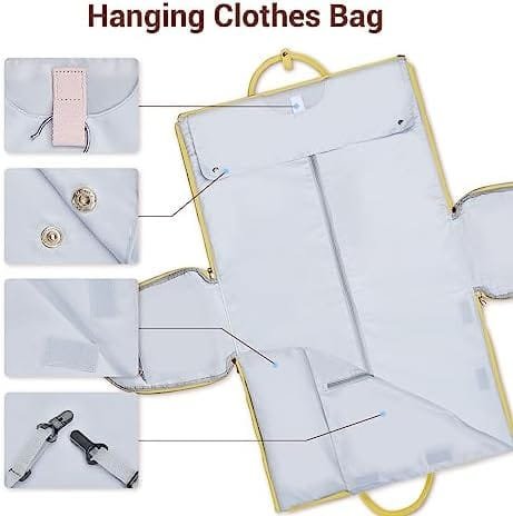 NO WRINKLE-HANGING GARMENT BAG: Opening this suit travel bag, you will find it could be used as great garment bags for travel for women. Adjustable clips are found on the bottom to fixed the clothes. There are also 2 buckles inside hanging bag for travel to keep the garment flat. Zipper chain is smooth and made of golden color to match. Buckles on the tail of zipper with safe design to decrease the effect of the gap and prevent someone to poke into the bag.