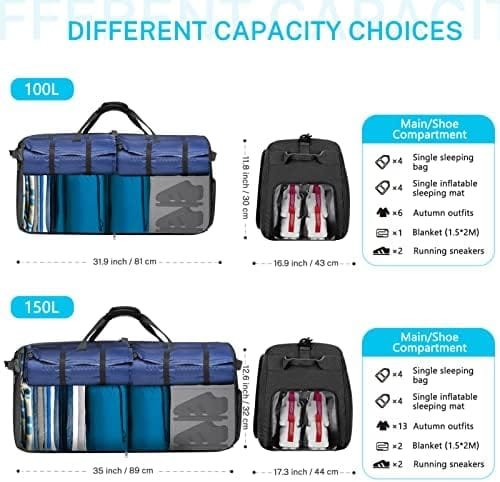 Gonex 40L 60L 80L 100L 150L Large Foldable Travel Duffle Bag with Shoes Compartment, Packable Lightweight Water Repellent Duffel Bag for Camping Gym Weekender Bag