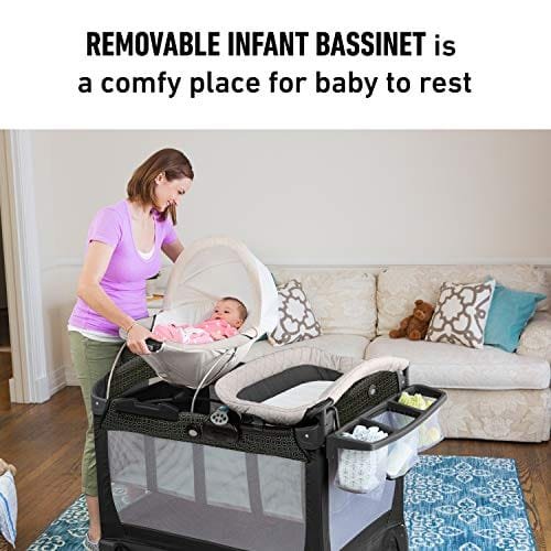 The Graco Pack ‘n Play Playard Snuggle Suite helps keep you connected to baby anywhere at home. The cozy, portable infant seat lets baby stay close to your side and then doubles as a portable bouncer – you can use built-in vibration either way! The extended-use changing station (including a built-in organizer for baby’s essentials) gives you a convenient changing spot longer, for baby up to 30 lb. Other terrific features like an infant bassinet, comforting songs and sounds, look light for nighttime check-ins, full-sized playpen and more make this a smart choice for soothing and play from birth to toddlerhood.