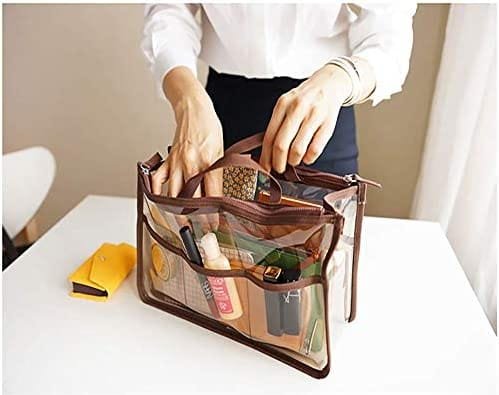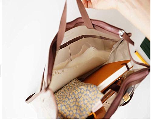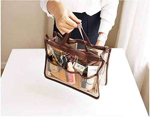 Handbag Organizer Clear Cosmetic Gadget Insert See Through Purse Organiser Transparent Makeup Travel Pouch Liner with Handle (Beige , 11(L)x6.5(W)x4″(D) )