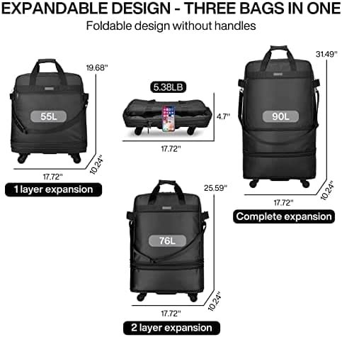 FOLDABLE: Quality collapsible rolling duffel bag folds down to a compact 17.72″ x 10.24″ x 4.7″ easy-to-store pouch when not in use.