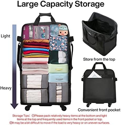 EASE OF MOBILITY: Four spinner wheels makes for easy control and movement, suit for all kinds of road conditions. When it’s fully extended, please pack large but light stuff at the top, such as shoes, coats and blanket.