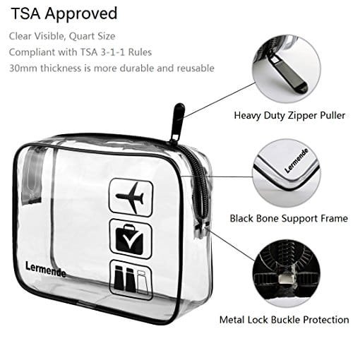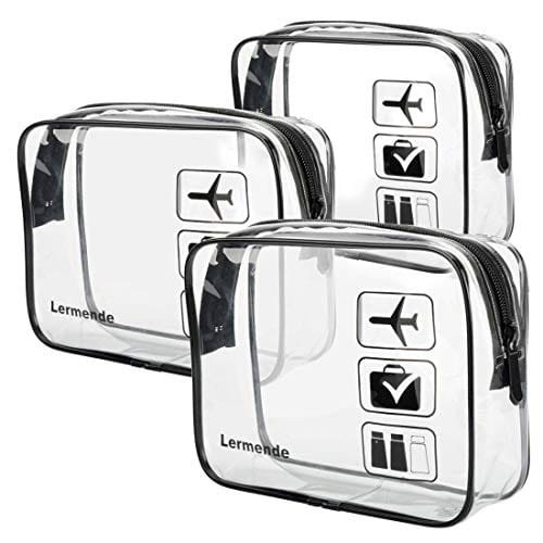 Lermende 3pcs TSA Approved Toiletry Bag with Zipper Travel Luggage Pouch Carry On Clear Airport Airline Compliant Bag Travel Cosmetic Makeup Bags for Men Women – Black