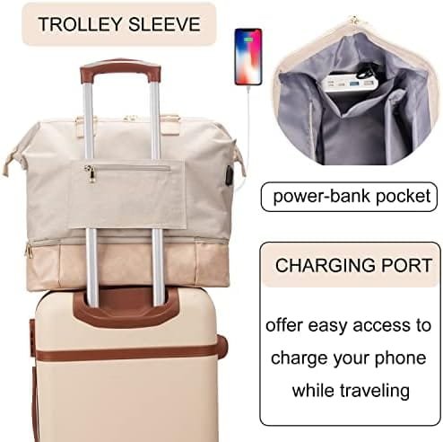 MINKARS Weekender Bag with Shoe Compartment Travel Duffle, Personal Item 17 Inch, Beige