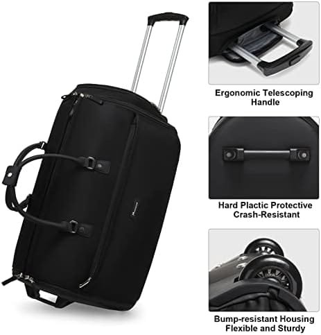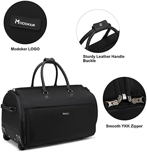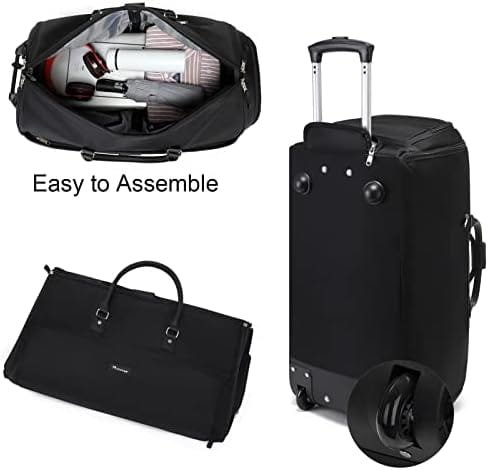 Modoker Rolling Garment Bags, Large Garment Duffle Bag with Wheels, 3 in 1 Garment Suit Luggage Bag for Women Men Business Travel Weekender, Black