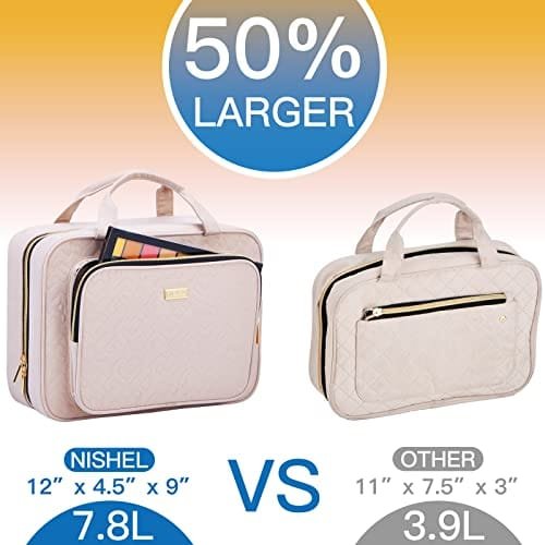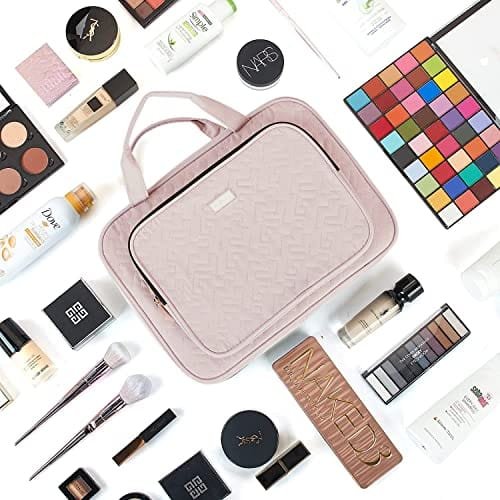 NISHEL Large Size Toiletry Bag for Women, Travel Essentials Organizer, Hanging Makeup Case for Accessories, Cosmetics, Toiletries, Pink