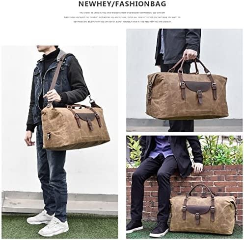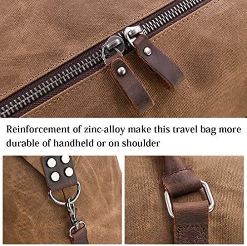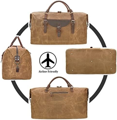 Oversized Travel Duffel Bag Waterproof Canvas Genuine Leather Weekend bag Weekender Overnight Carryon Hand Bag Brown