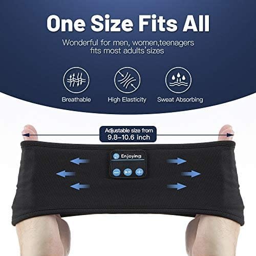 【Comfortable, Breathable and Washable Headband】Sports headphones headband are extremely soft and lightweight, which is made of durable braided cord and offers a breathable mesh lining, will easily stretch to fit all head sizes, also incredibly soft. The bluetooth headband headphones are washable, simply remove the speakers and clean the band. Useful for wearing an eye mask for sleeping so the light-blocking feature is helpful. The headband wide range is 9.8-10.6 inches.