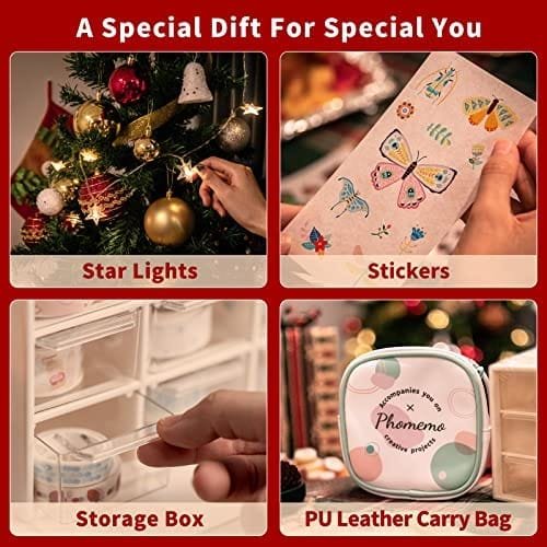 Phomemo Gifts Set- Storage Box, LED Star Light, PU Leather Carry Bag, funny Stickers.