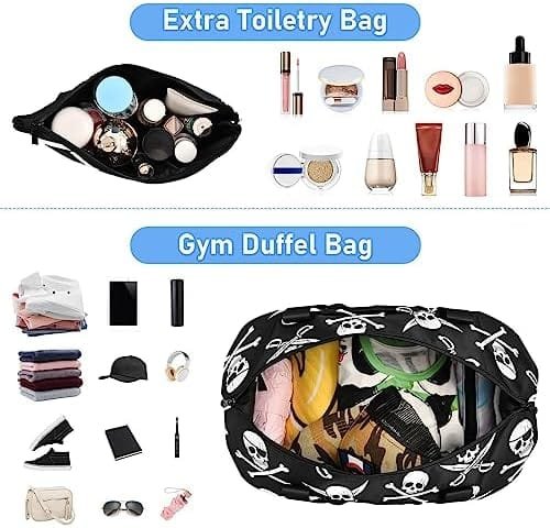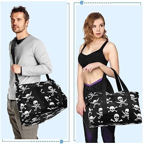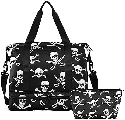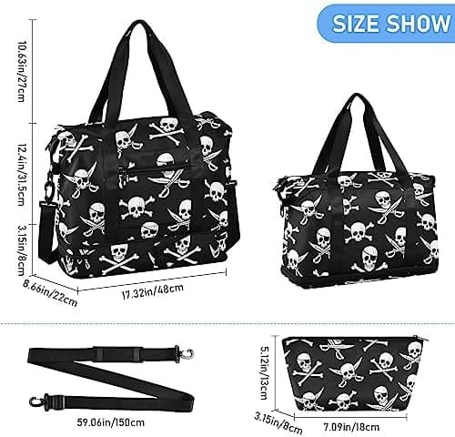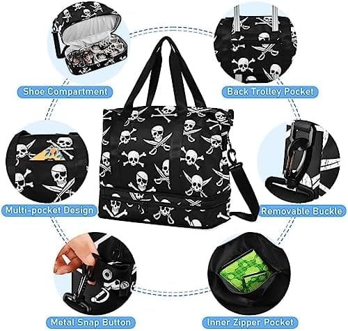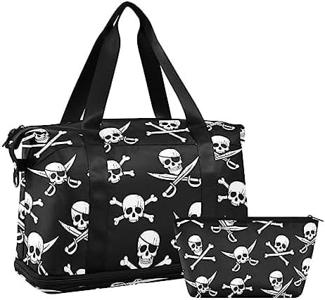 Pirate Skull Travel Duffel Bag for Women Men Gym Bag with Shoe Compartment Wet Pocket Carry On Weekender Overnight Bags for Travel Hospital Gym