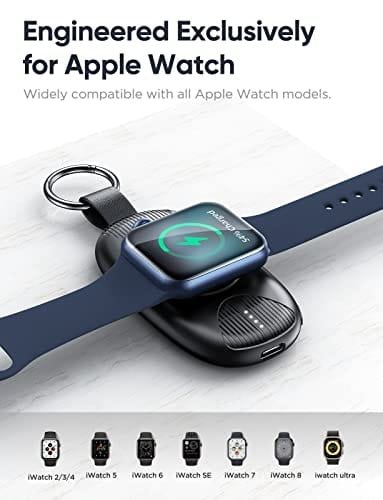 Portable Charger for Convenient Charging. Our Apple Watch keychain charger features a tiny size, portable and compact design, making it possible and convenient to carry around for daily or travel use. Slide the car key-sized wireless charger to your pocket/wallet, or clip it onto your key ring or backpack zipper to avoid dropping it accidentally.