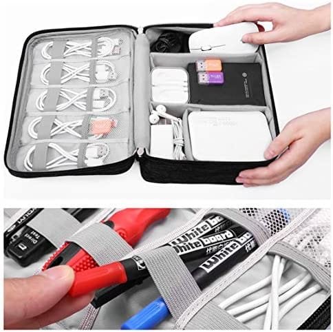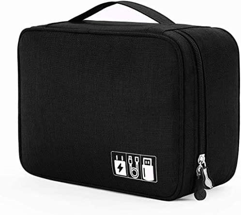 Portable Electronic Organizer Travel Accessories Cable Bag Universal Cord Storage Case Carrying for Charging Cable, Cell Phone, Power Bank,Mini Tablet(Single Layer,Black)