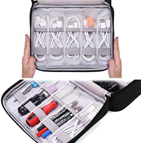 PREMIUM MATERIAL: The cable case organizer is made of heavy-duty, durable, and waterproof fabric. Well padded semi-flexible interior, excellent protection for your gadgets against scratches, dust, impacts, and accidental dropping.
